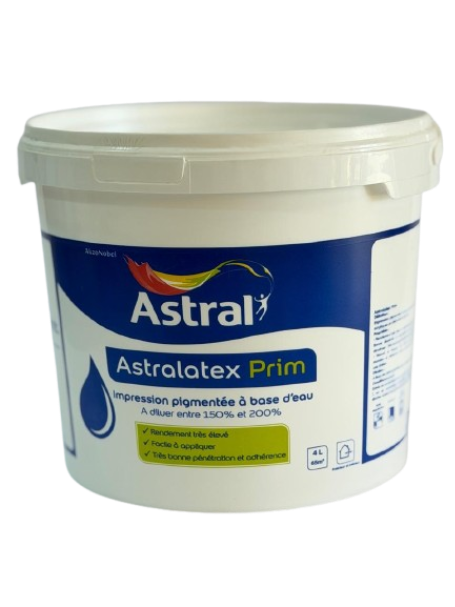 ASTRALATEX PRIM est parfaitement adaptée pour l’impression des supports poreux tels que la pâtre , le ciment et les enduits